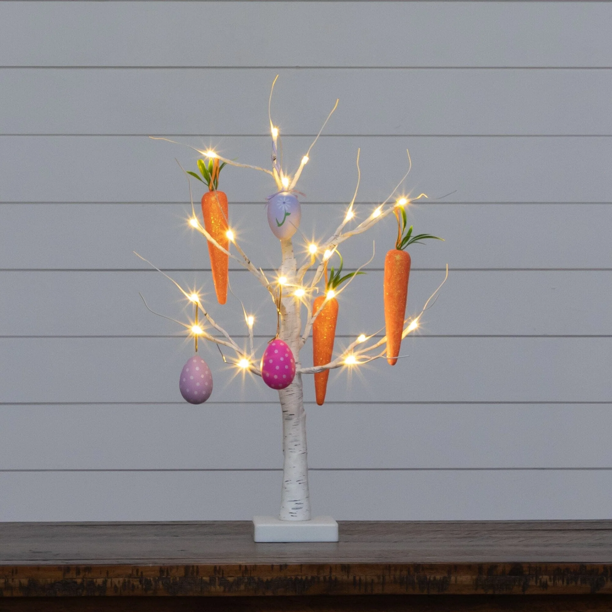 2' Pre-Lit Artificial Easter Egg and Carrots Ornament Twig Tree with 24 Warm White LED Lights